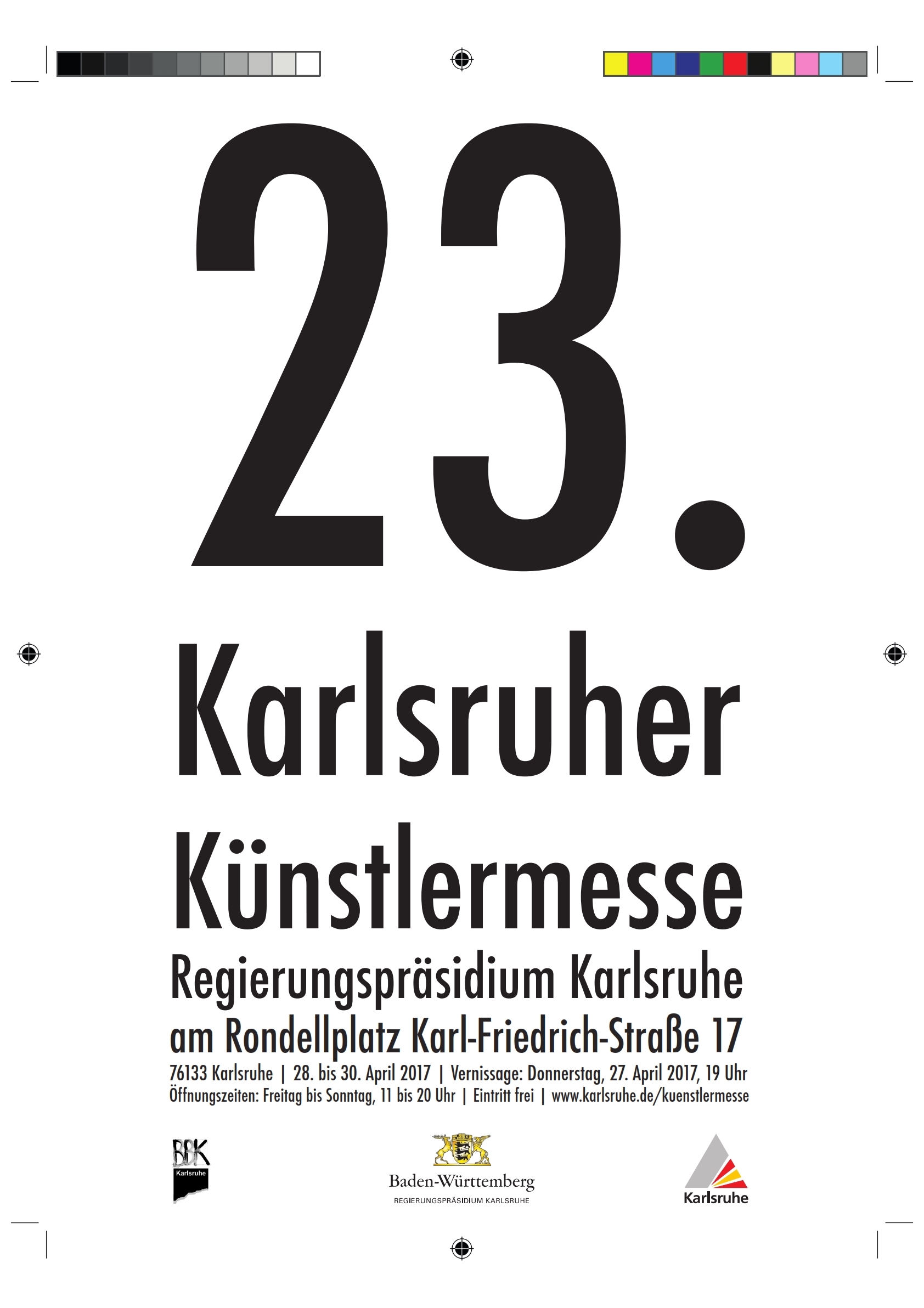 Parallel zum Wettbewerb um die Teilnahme an der Künstler*innenmesse wird ein eigen­stän­di­ger Plakat­wett­be­werb ausge­schrie­ben, mit dem das Werbe­pla­kat für die Karlsruher Künstler*innenmesse ermittelt werden soll.