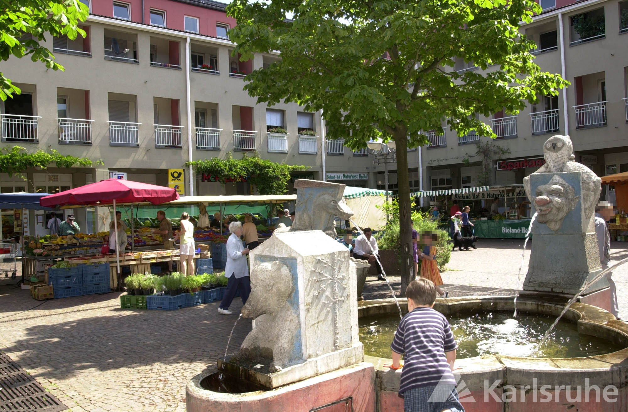 Der Markt auf dem Durlacher Marktplatz ist einer der wenigen in Karls­ruhe, der täglich seine Kundschaft einlädt, frisches Gemüse und Obst zu kaufen. Immer montags bis samstags stehen die Stände mit ihrem Sortiment für die Kundschaft bereit. Es gibt Obst und Gemüse, Wurst- und Fleisch­wa­ren und vieles mehr.