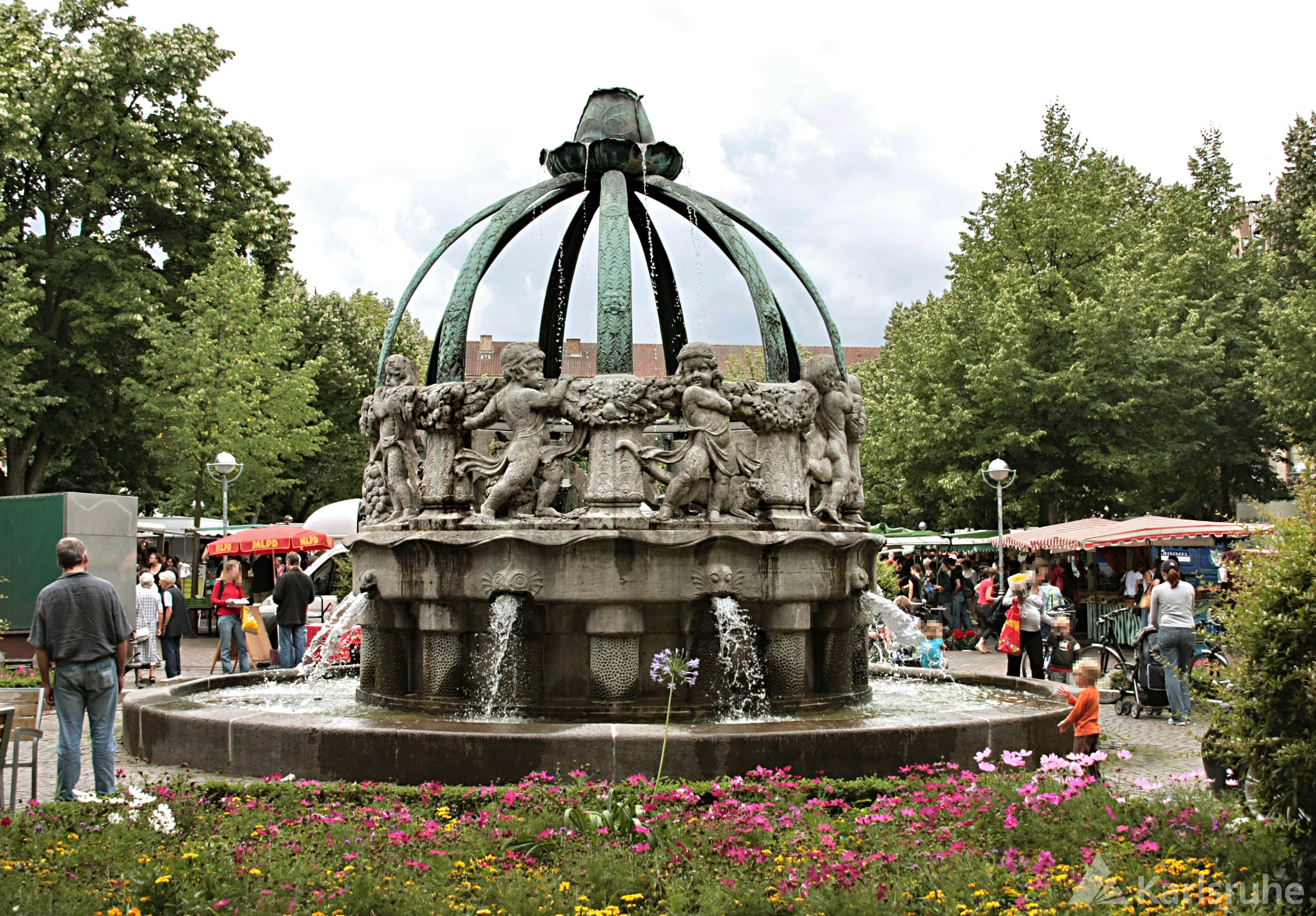 Wegen der Vielfalt und Frische ist der Wochen­markt auch weit über die Stadt­grenze von Karlsruhe hinaus bekannt und belieb­t und nicht zuletzt auch wegen seinem besonderen Flair auf dem his­to­ri­schen Platz mit dem Kraut­kopf­brun­nen, alten Linden und der um­lie­gen­den Gastro­no­mie.