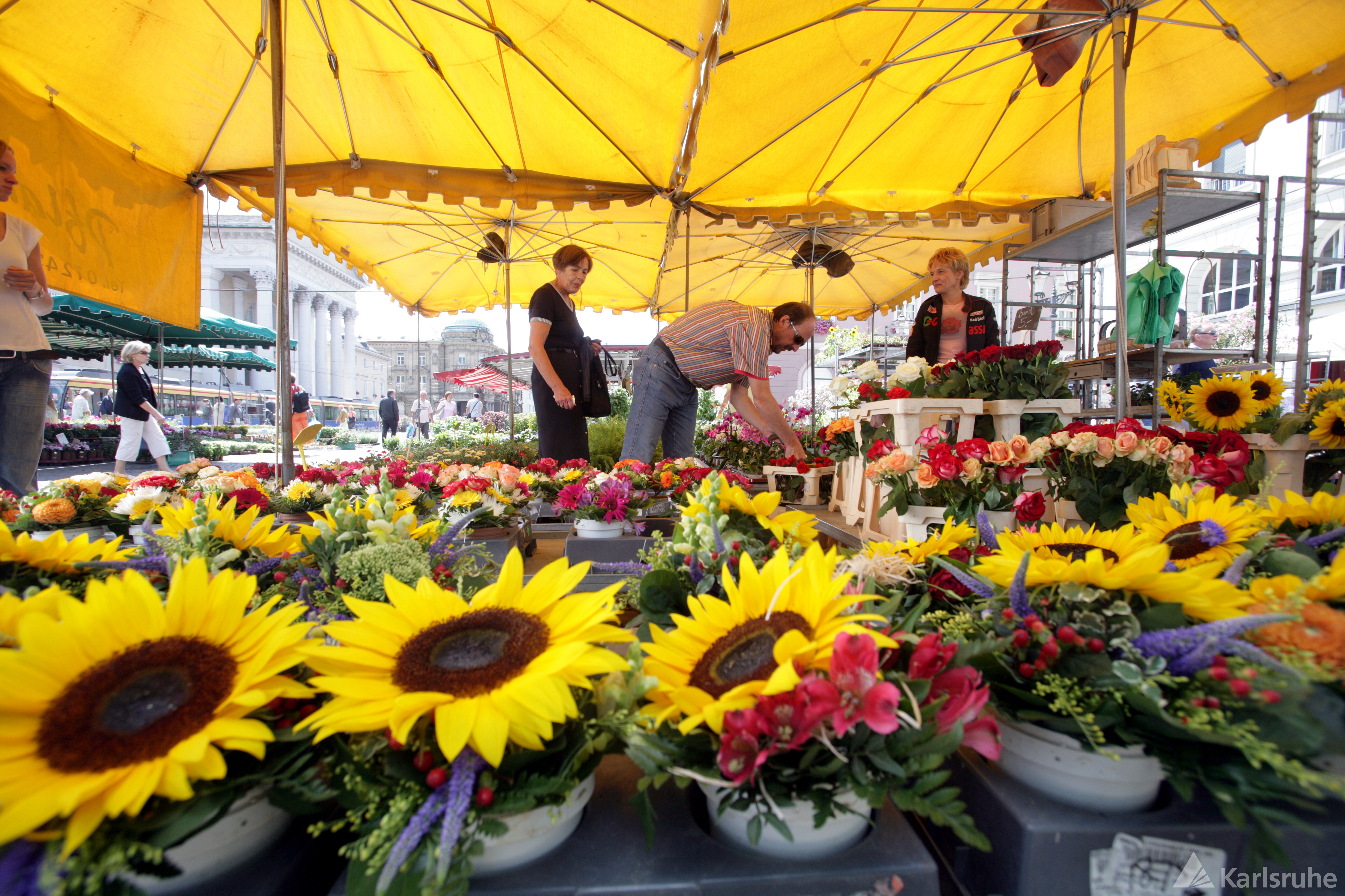Die Karlsruher Wochenmärkte bringen Vielfalt in die Stadt. Eine rund 600 Quadratmeter um­fas­sende Obst- und Gemüsetheke: Grund­nah­rungs­mit­tel wie Brot, Käse und Fisch reihen sich in ein umfang­rei­ches Angebot an Fleisch- und Wurst­wa­ren. Zudem locken zahlreichen Spezia­li­tä­ten­stän­de mit Leckereien wie franzö­si­scher Salami, italie­ni­scher Pasta oder türkischen Oliven. Traumhafte Blumen, Pflanzen oder selbst her­ge­stellte Seife und Keramik ergänzen das vielfältige Angebot der Märkte.