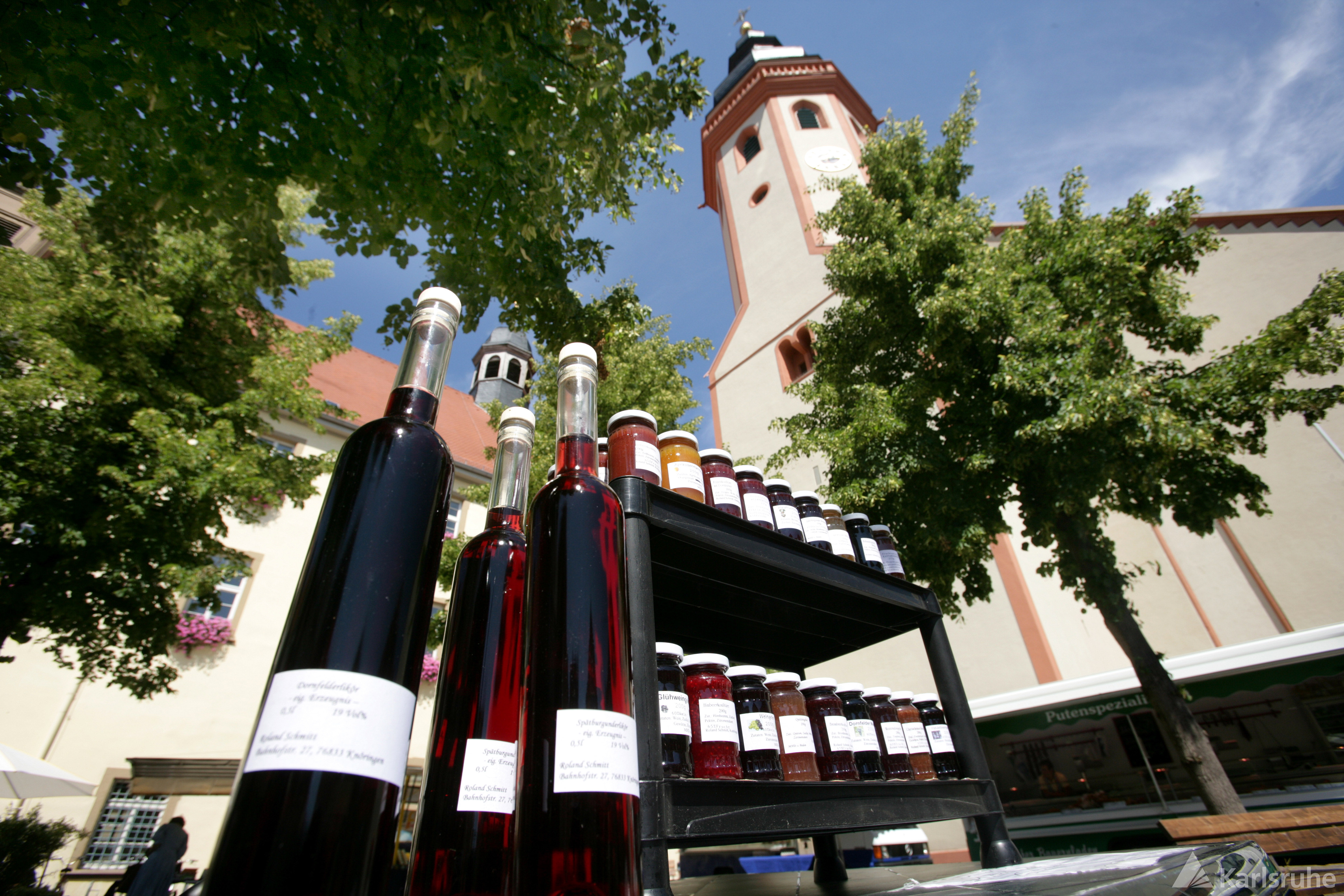 Der Bauern­markt, auf dem Selbs­t­er­zeu­gerinnen und Selbsterzeuger der Region ihre saisonalen Waren anbieten, findet zusätzlich zum tradi­tio­nel­len Wochen­markt auf dem Durlacher Marktplatz immer mittwochs von 7 bis 13 Uhr statt.