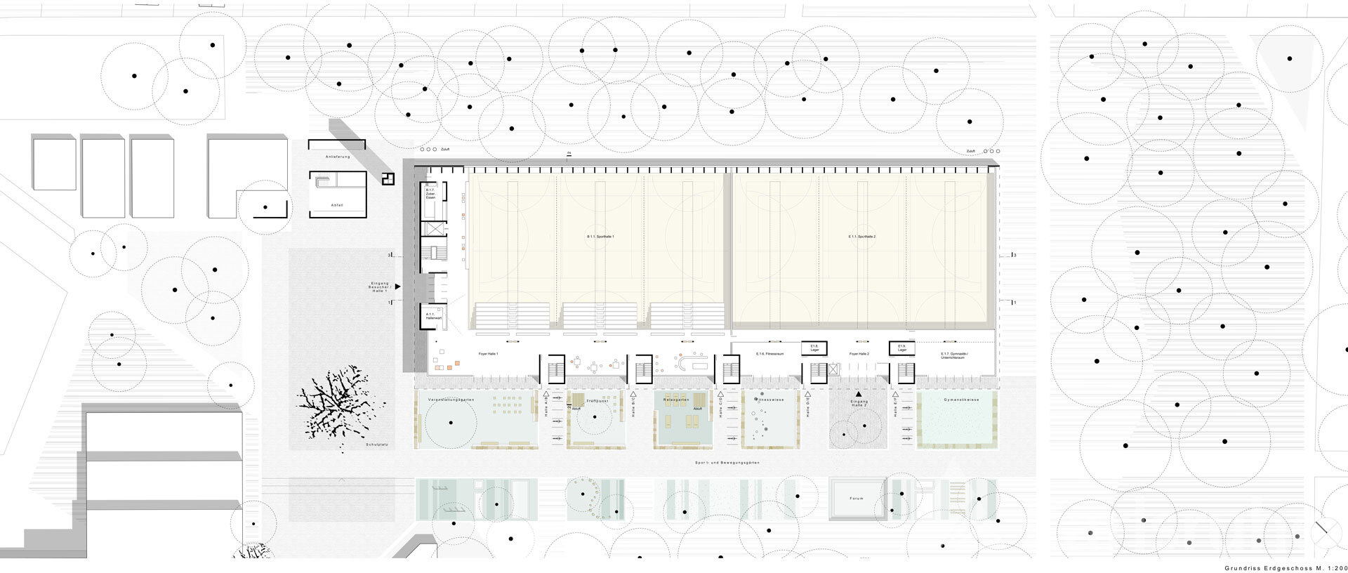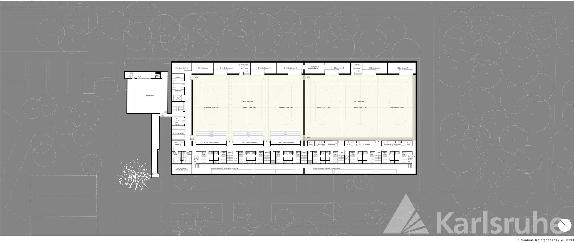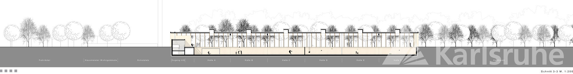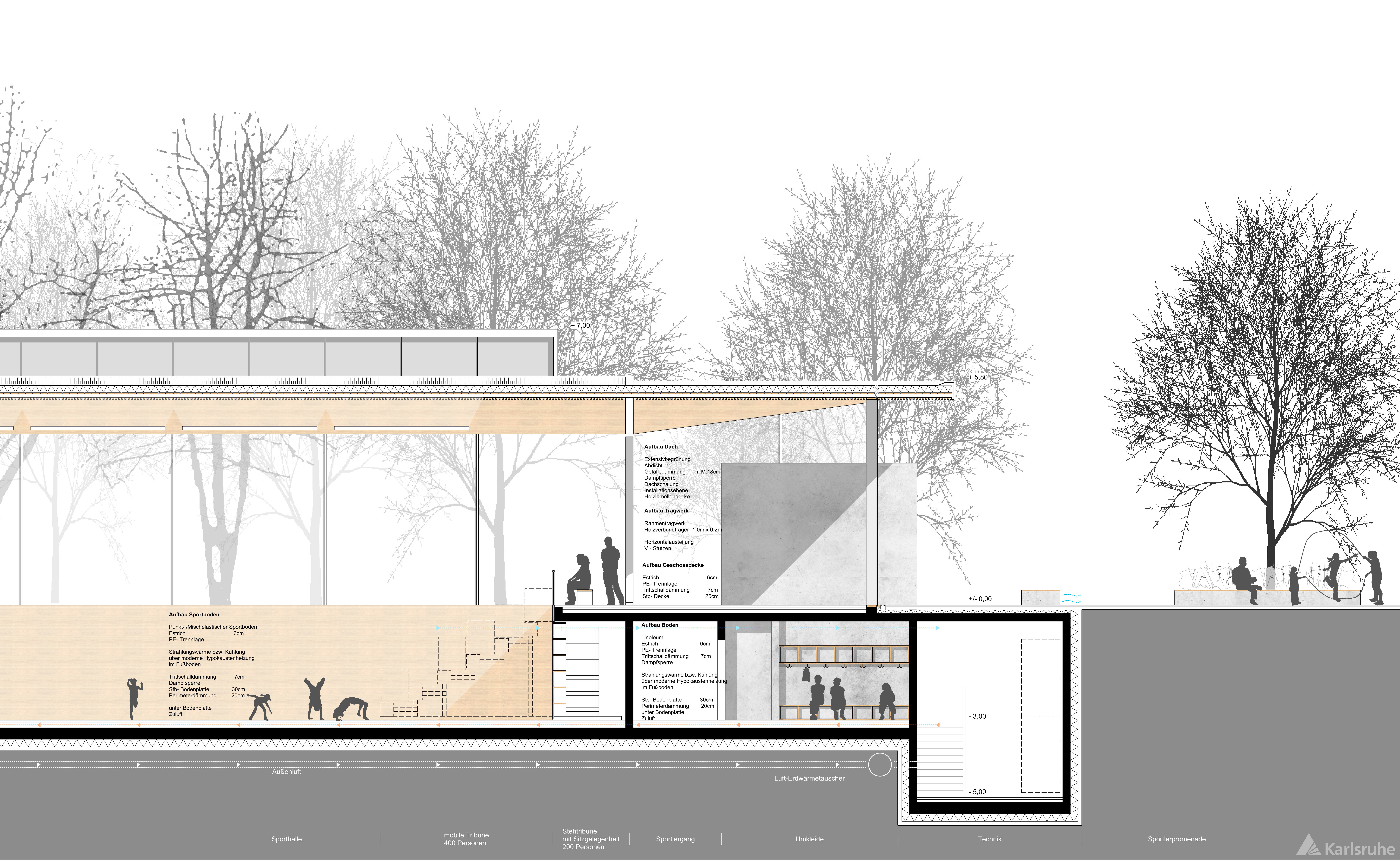 | Preisgericht | Vorsitz: Prof. Gerd Gassmann, Architekt, Karlsruhe Daniel Fluhrer, Bürgermeister Stadt Karlsruhe Joachim Frisch, Leiter Schul- und Sportamt, Stadt Karlsruhe Prof. Dr. Robert Pawlowski, Bauingenieur, Hochschule für Technik und Wirtschaft, Karlsruhe Dip. Ing. Albrecht Randecker, Architekt, Stuttgart Prof. Anne Sick, Leiterin Amt für Hochbau und Gebäudewirtschaft, Stadt Karlsruhe |