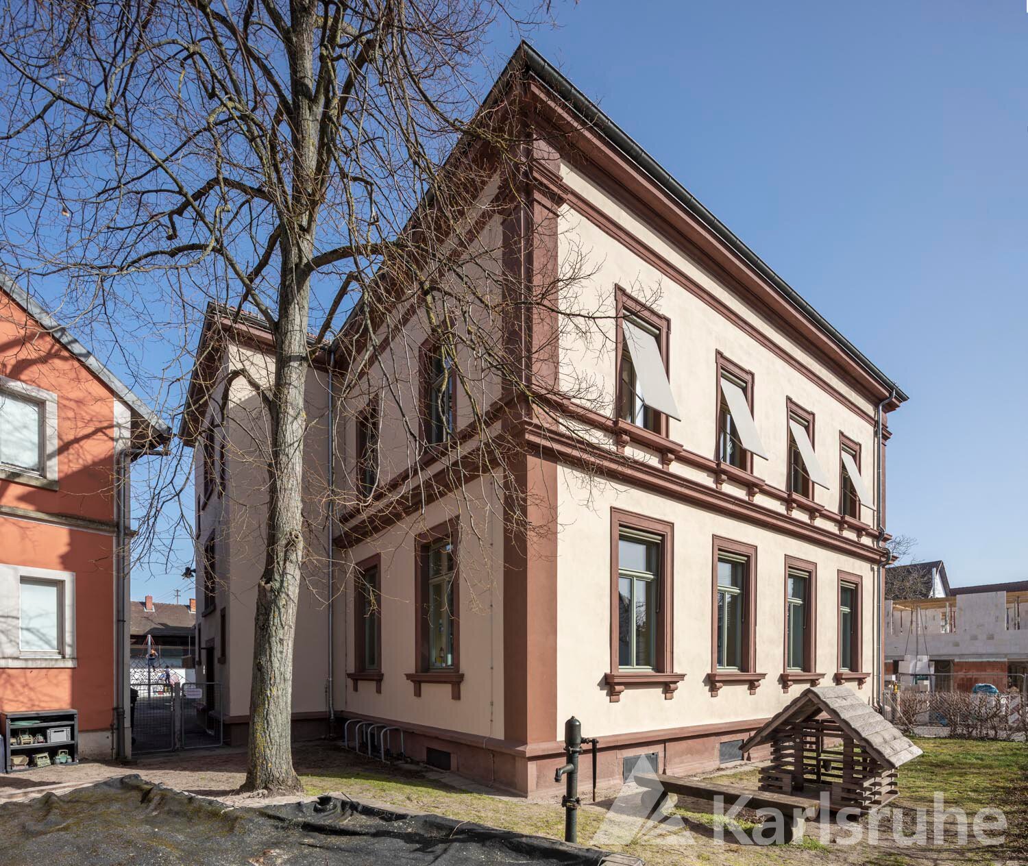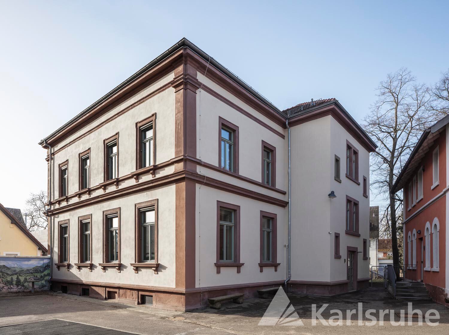 Die äußere Hülle der denkmalgeschützten Federbachschule im historischen Kern des ehemaligen Fischerdorfs Daxlanden war etwas in die Jahre gekommen. Umfangreiche Arbeiten an Putz und Steinen sowie die Erneuerung der Fenster und weitere Sanierungsmaßnahmen haben die Fassaden des hübschen Schulgebäudes zwischen 2018 und 2020 auf einen zukunftsfähigen Stand gebracht. Der Gesamtaufwand belief sich auf rund 600.000 Euro brutto.