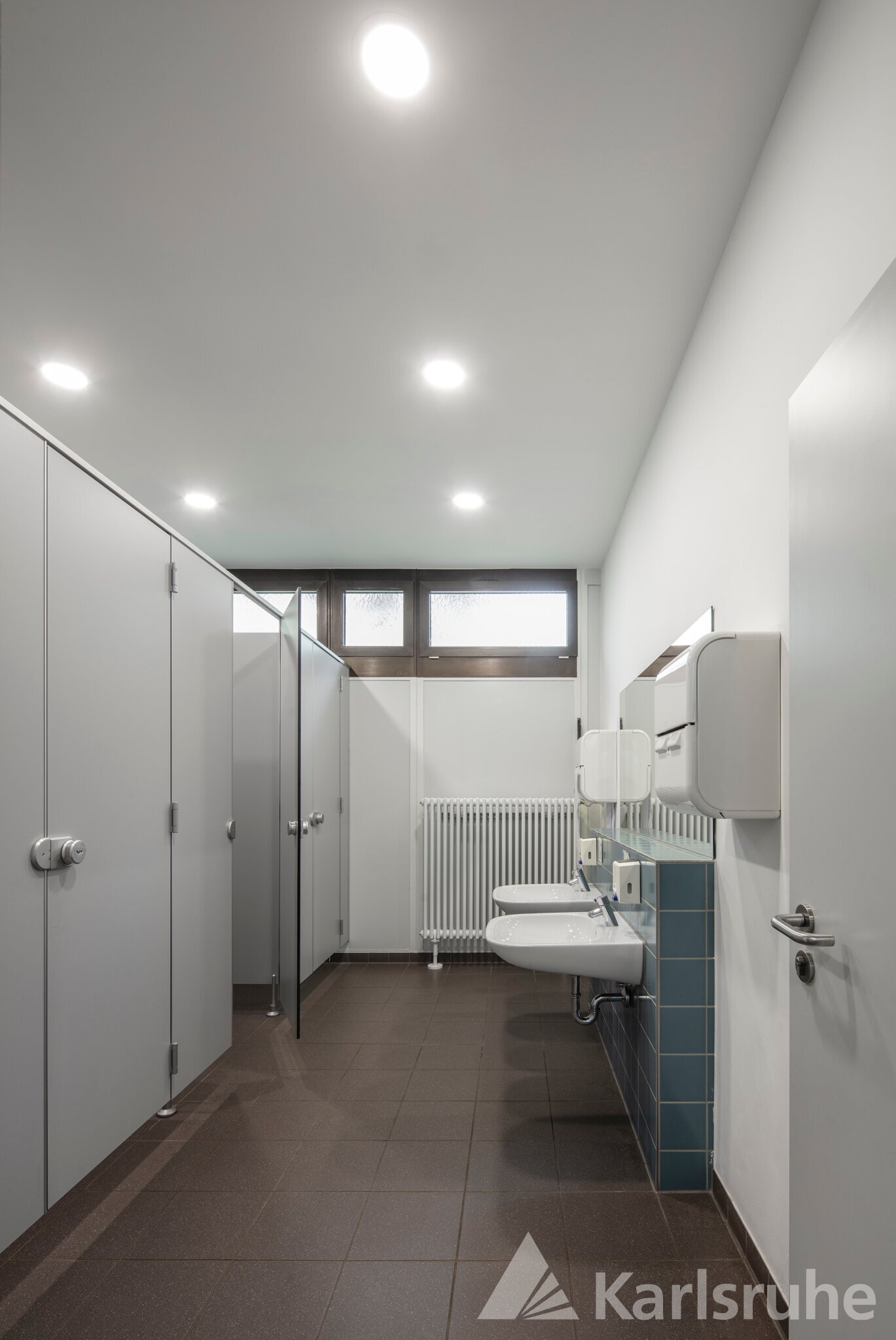 Auch die sanitären Anlagen wurden umfassend modernisiert. Sowohl die Wasser- als auch die Heiz- und Elektroversorgung wurde komplett erneuert. Die abgehängten Decken wurden ebenfalls mit neuen Gipskartondecken erneuert. Zusätzlich kam ein modernes Trennwandsystem zum Einsatz. Sämtliche Sanitärobjekte wurden erneuert und die Wände und Böden neu gefliest.