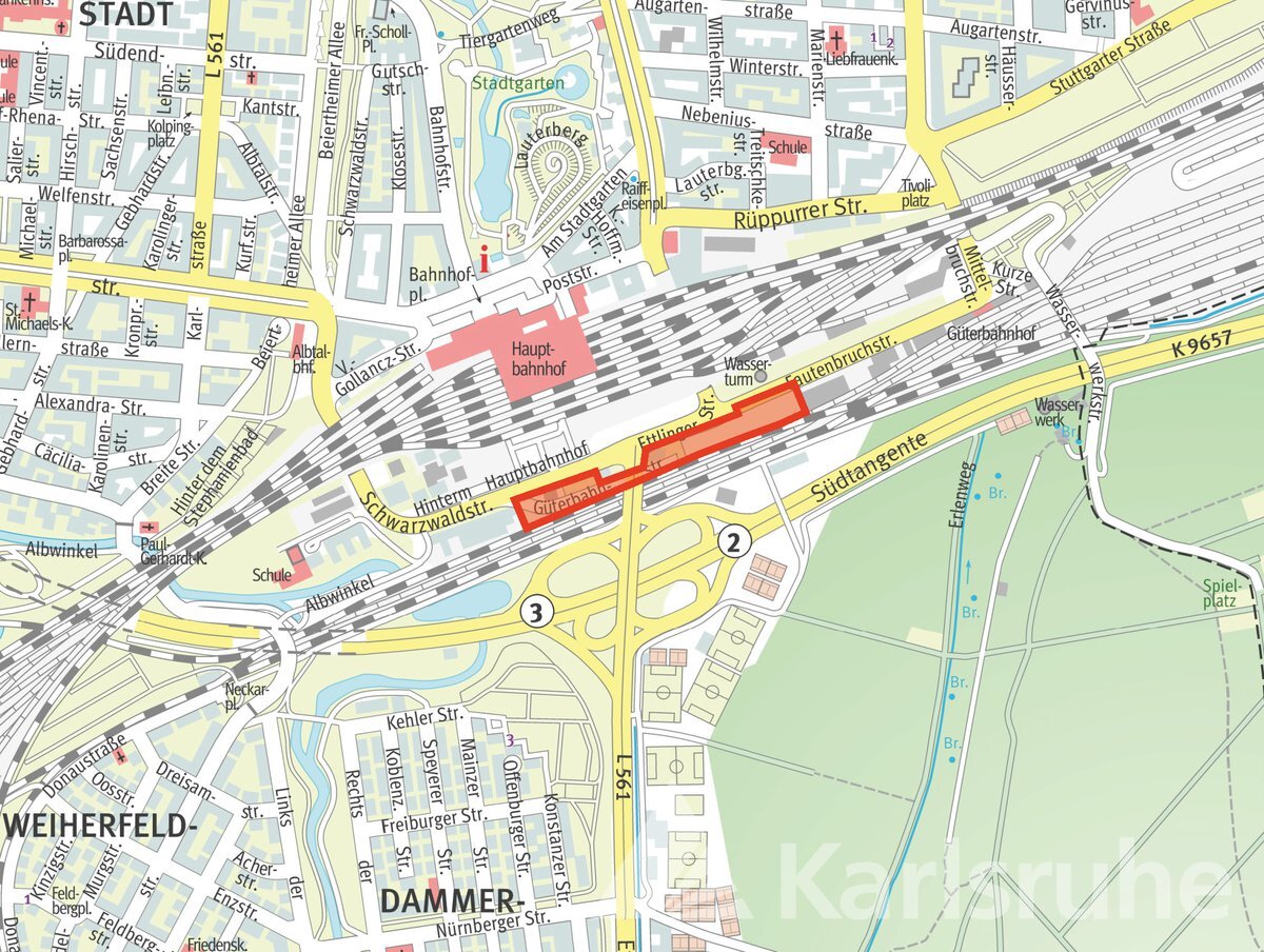 Südlich des Karlsruher Hauptbahnhofs liegt eine der wichtigsten städtebaulichen Entwicklungsflächen der Stadt, das Areal bildet einen südlichen Eingang zur Innenstadt.
