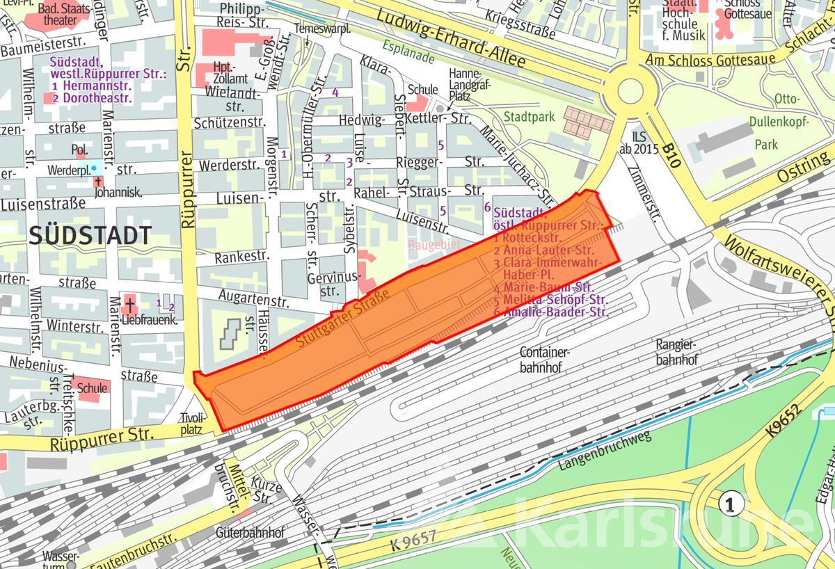 Die Sportstätten der ESG-Frankonia sollen von der Durlacher Allee an die Stuttgarter Straße verlagert werden, wo sich derzeit eine Kleingartenanlage befindet. Für die Umsetzung der Planung wird die Aufstellung eines Bebauungsplans notwendig.