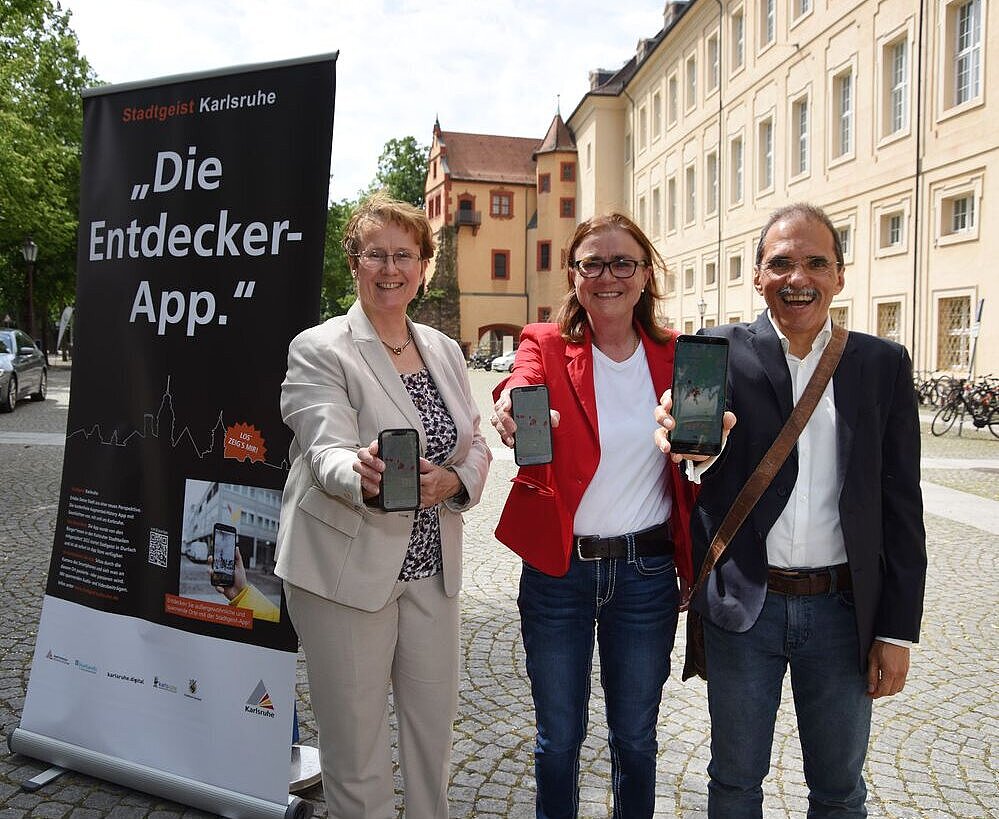 Der ein oder andere hat sie vielleicht schon gesehen: Die Karlsruhe.App fährt nun auch durch das Stadtgebiet – als Werbung auf einer Straßenbahn, wie Bürgermeister Dr. Albert Käuflein und Markus Losert, Leiter des Amts für Informationstechnik und Digitalisierung, jüngst auf einem Pressetermin im Depot der Verkehrsbetriebe Karlsruhe bekannt gaben.