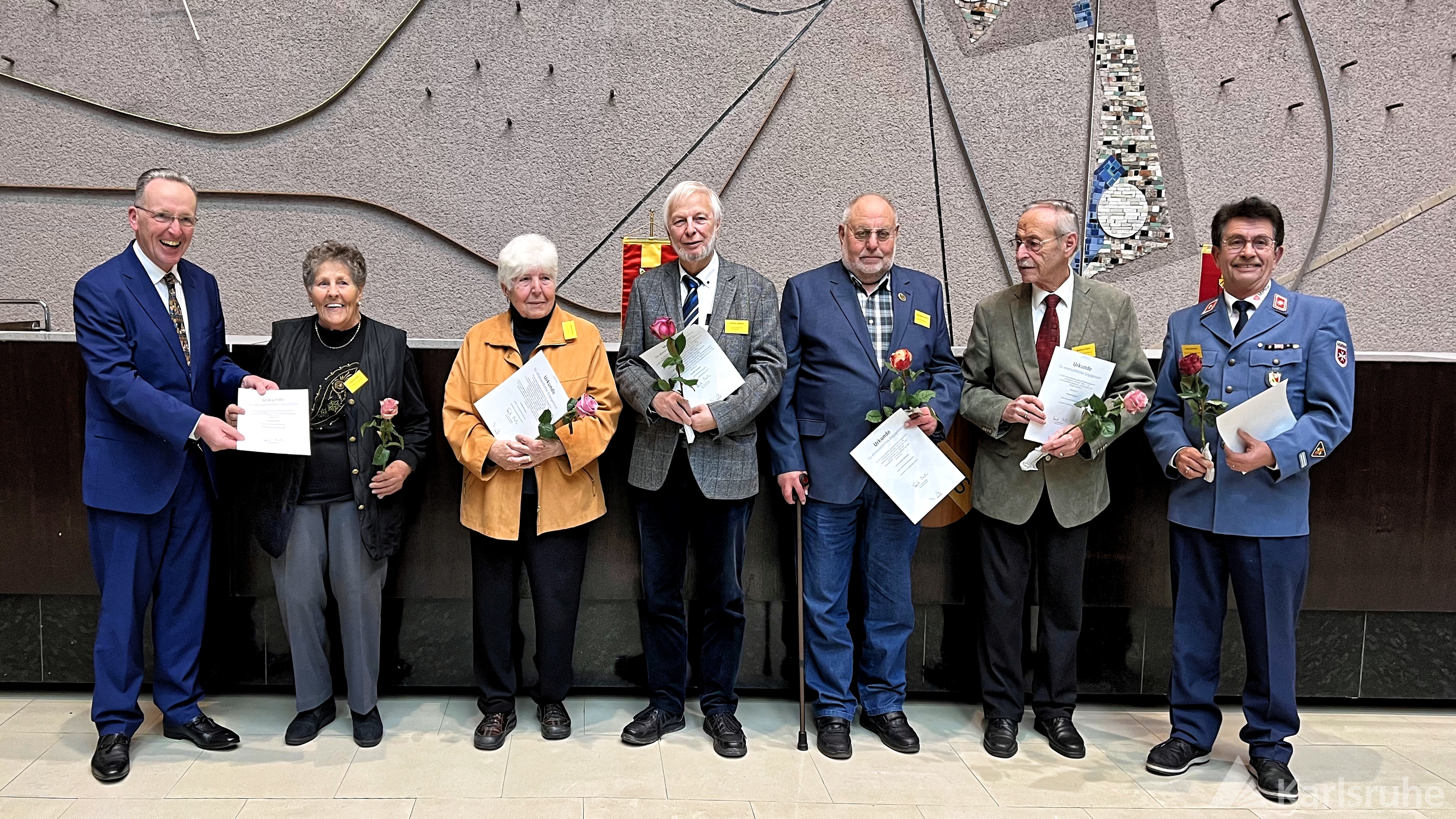 Anlässlich des jährlichen Internationalen Tag des Ehrenamts, 6. Dezember, ehrte Bürgermeister Dr. Albert Käuflein am 7. Dezember 2023 herausragend Engagierte. Gemeinsam haben sie 1445 Jahre freiwilligen und ehrenamtlichen Aktivitäten gewidmet – durchschnittlich beachtliche 21 Jahre.