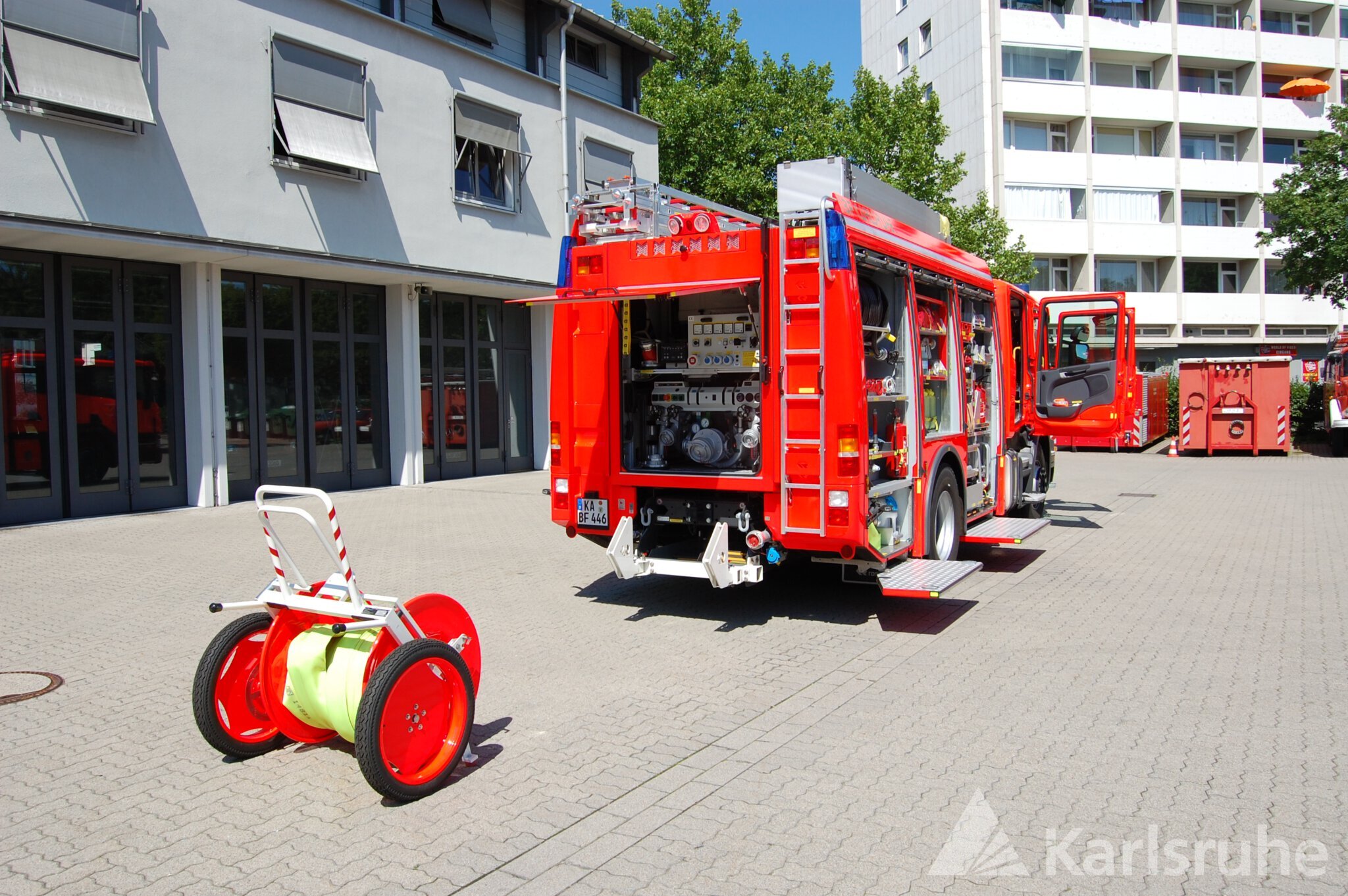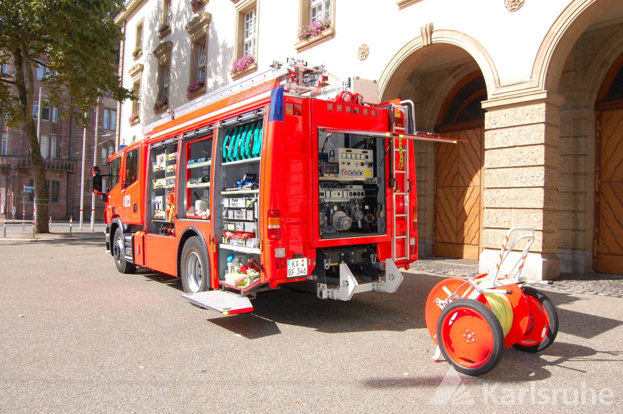 Der Fuhrpark der Berufsfeuerwehr Karlsruhe umfasst zwei Löschzüge, Reser­ve­fahr­zeuge, Sonder­fahr­zeuge, Fahrzeuge des Innen­dienst und des Katastro­phen­schutzes.