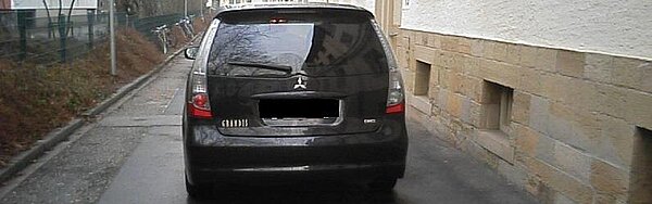 Das Bild zeigt ein falsch geparktes Auto. Tatbestand: Parken in Fußgängerzonen