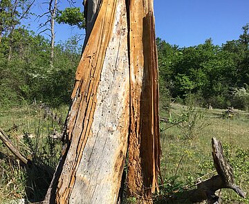 Morsches Holz und abgestorbene Bäume sind wichtiger Bestandteil im Ökosystem Wald. Sie sind die Lebensgrundlage für zahlreiche Tier- und Pilzarten. Im Karlsruher Stadtwald wird seit 2009 ein Alt- und Totholzkonzept umgesetzt.
