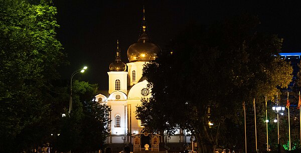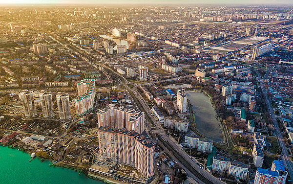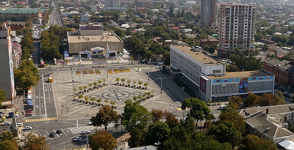 „Die Perle Russlands“, so wird das Kuban­ge­biet am Fuße des schnee­be­deck­ten Kaukasus unweit des Schwarzen Meeres auch genannt. 1867 erhielt das damalige Jekate­ri­no­dar den Status einer „zivilen Stadt“. Zu Beginn des 20. Jahrhun­derts fuhren dort Straßen­bah­nen. Es gab ein Elektri­zi­täts­werk, Telefon und Kinos. Die Stadt wurde wegen ihrer schönen Parks und Kathe­dra­len berühmt, und ihre Gebäude in den Haupt­stra­ßen standen den Bauten in der russischen Hauptstadt in nichts nach. An der Spitze der Stadt­ver­wal­tung regierte das Stadt­par­la­ment, die „Duma“. Doch die Oktober­re­vo­lu­tion erreichte auch den Kuban. Die Regie­run­gen wechselten. Ein neuer Stadtname wurde angeordnet: Seit 1920 heißt die Stadt Krasnodar (aus dem Russi­schen krasnyi für rot). Während des Zweiten Weltkriegs wurde die Stadt von deutschen Truppen besetzt und im weiteren Kriegs­ver­lauf zerstört. So prägen heute überwie­gend moderne Bauten das Stadtbild. Grün und großzügig präsen­tiert sich die Metropole: Das mediter­rane Klima und die großen Alleen im Zentrum erinnern mehr an einen Urlaub im Süden als ein vom früheren Sozia­lis­mus geprägtes Stadtbild.
