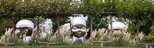 Triumphbogen in Krasnodar, davor eine Statue