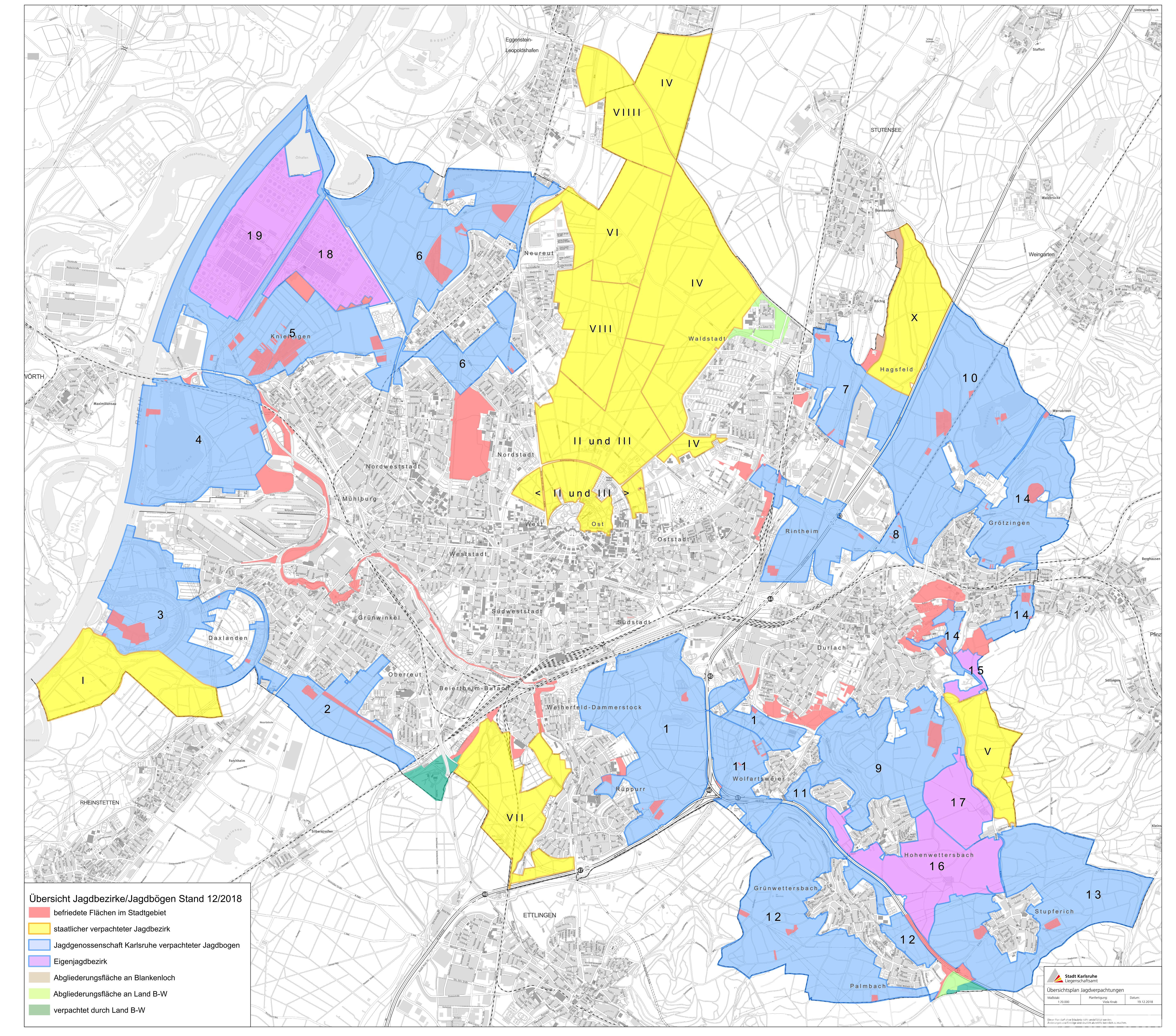 Die Stadt Karlsruhe nimmt bis auf die Staatswaldflächen von ForstBW die Aufgaben der unteren Jagdbehörde im Stadtkreis wahr.