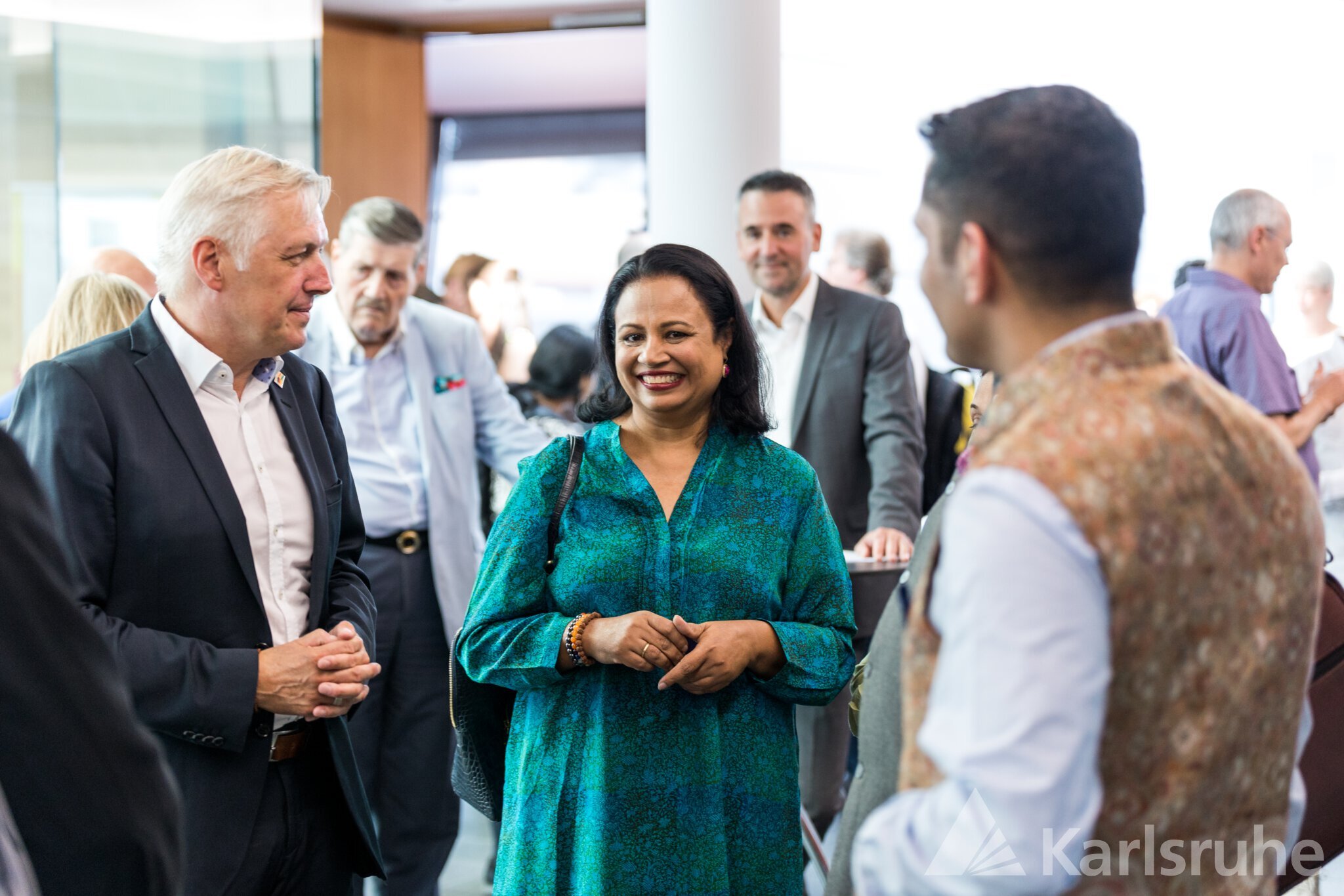 Bei der nachfolgenden Oberbürgermeisterrunde waren sich OB Dr. Frank Mentrup, OB Dietmar Späth aus Baden-Baden und OB Cornelia Petzold-Schick einig, dass gute internationale Zusammenarbeit auf kommunaler Ebene nicht nur wirtschaftliche Aspekte betrifft. Nachhaltige Projekte und Beziehungen entwickeln sich dann besonders positiv, wenn auch Wissenschaft und Kultur ihre verbindende Wirkung entfalten. Dafür gibt es in der TechnologieRegion Karlsruhe bereits gute Beispiele von der Hochschulzusammenarbeit bis zur Eröffnung der ersten indischen Kunstgalerie in Süddeutschland.